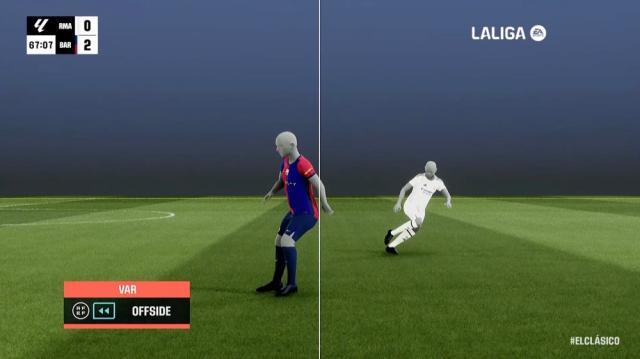 而维尼修斯本场的锋线搭档姆巴佩,则让自己的国家德比首秀成为不堪回首的回忆。整个上半场姆巴佩完全迷失在了巴萨制造的越位陷阱中,在禁区前的接球几乎是全部越位,全场8次越位更是刷新了个人职业生涯新高。而即使是在越位状态下的射门,姆巴佩也是屡次失准,开场不久越位位置上的单刀球一脚命中边网,让伯纳乌一片哗然。第30分钟姆总的那个精彩挑射破门原本还让伯纳乌为他疯狂了一番,但在VAR的回放下还是被无情吹为越位。